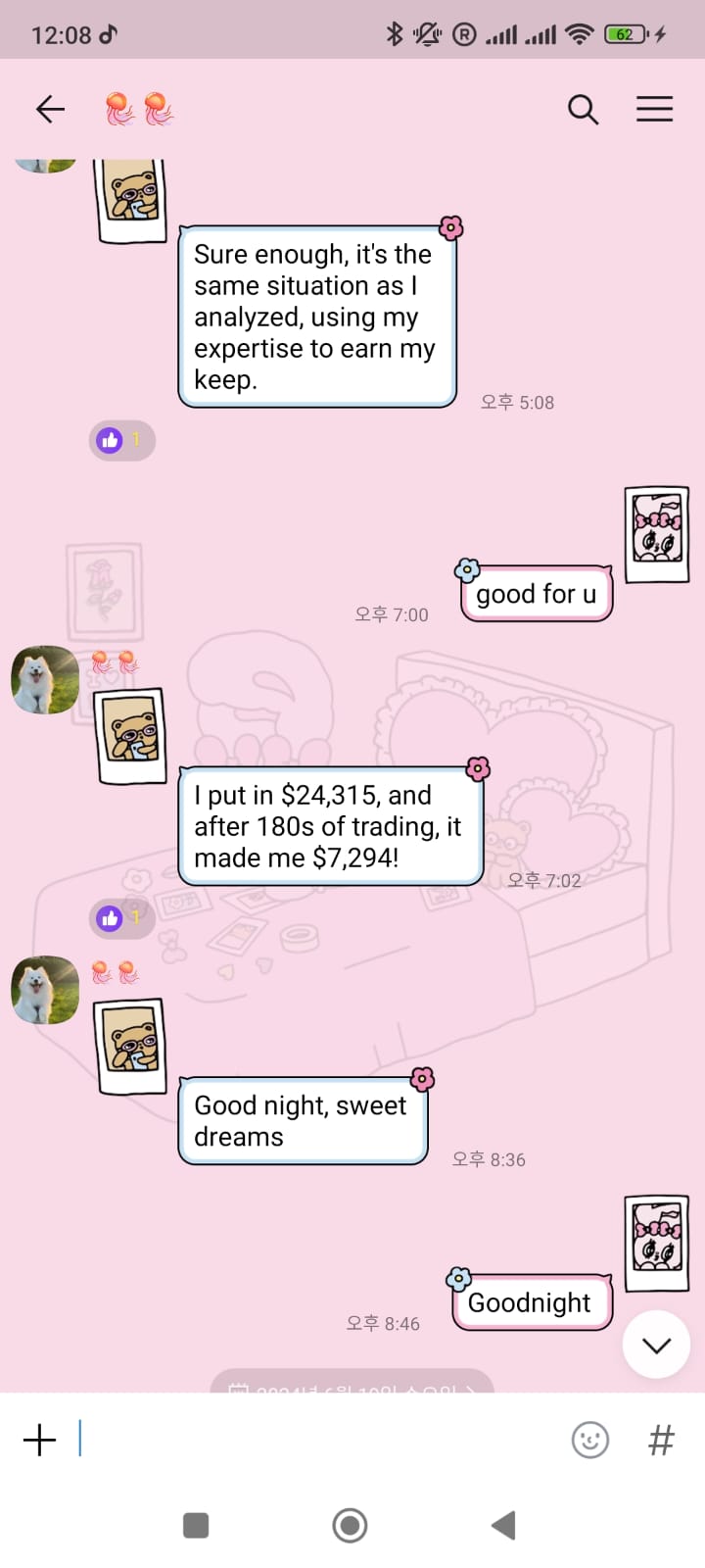 카톡으로 넘어가자고 해서 얘기해봤더니